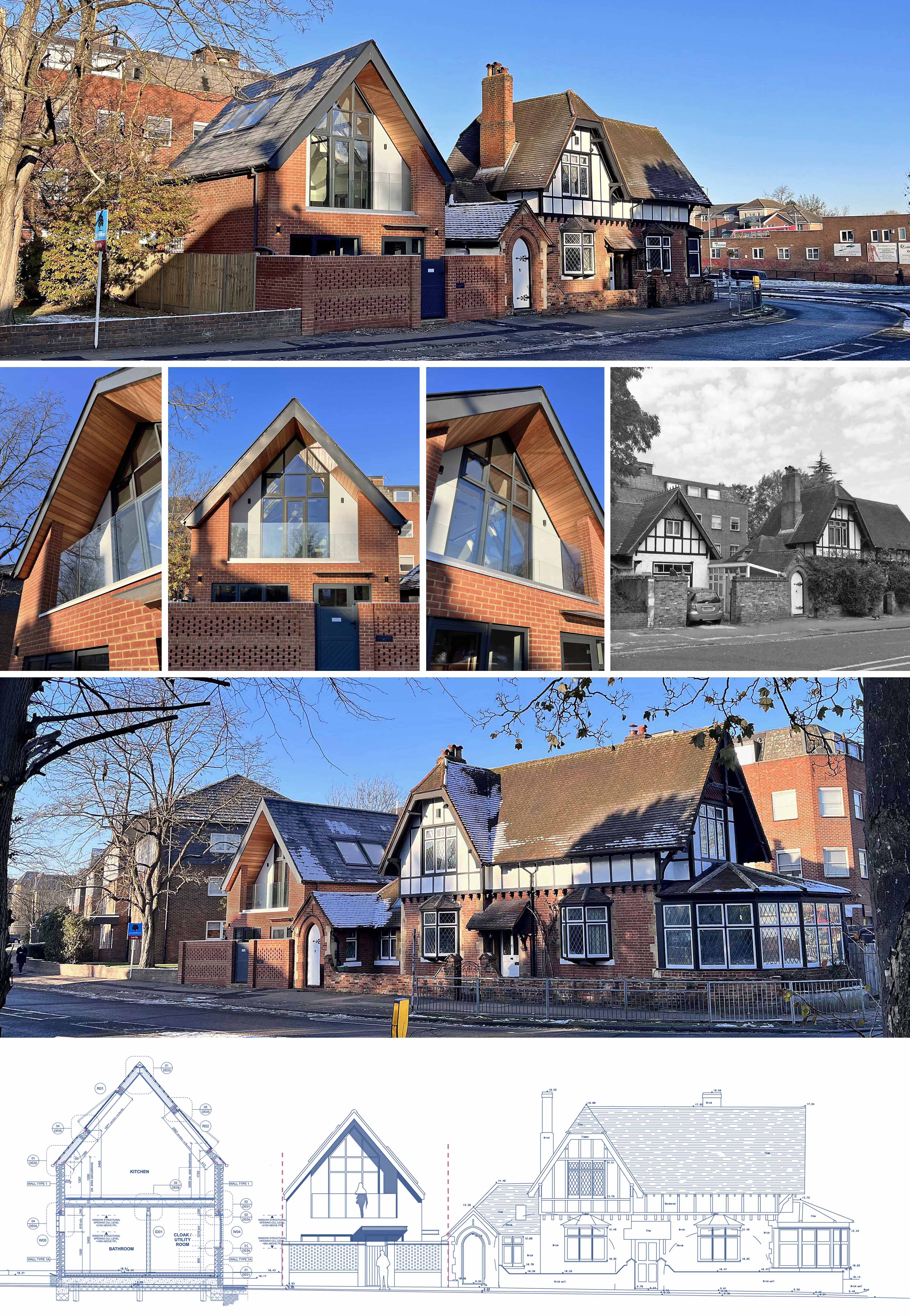 project description I from the development of a design concept, through to achieving planning consent and preparing technical information, studio heathfield designed this new two storey dwelling for a streetscape site in south london. the limited scope of the site meant that the new house is in affect a single elevation building, with the entrance level facing onto a new private outside area, and the first floor street facing façade characterised by full height glazing that takes advantage of the internal vaulted ceiling of the main living area, and which in turn opens out onto a covered external terrace. along with the design of the dwelling itself, the new structure aims to blend into the current streetscape by reflecting the prominent features of the adjacent period property, including the gable roof form and the vertically proportioned glazing
