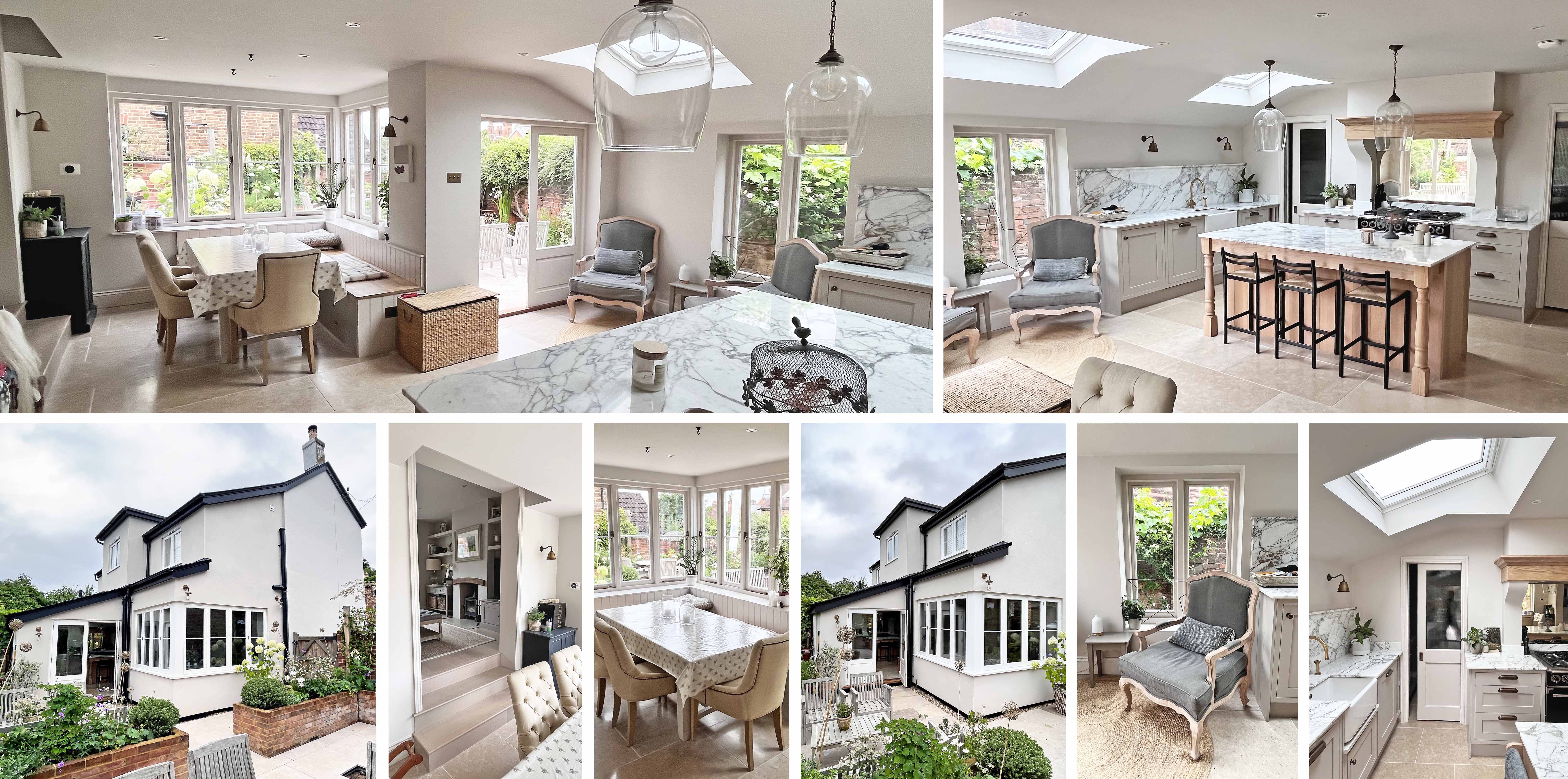 project description I located in a conservation area, the extension of this detached georgian inspired property included a part single / part two storey rear extension and associated internal alterations together with the enlargement of an existing basement with new light wells. central to the design concept was a need to integrate new elements of the house that would tie in with the different floor and ceiling levels of the original house and at the same time, provide a strong visual connection between the enlarged and open plan ground floor living areas and the reorganised garden spaces